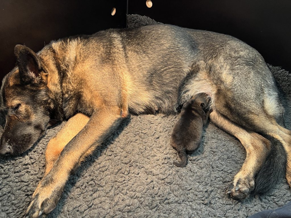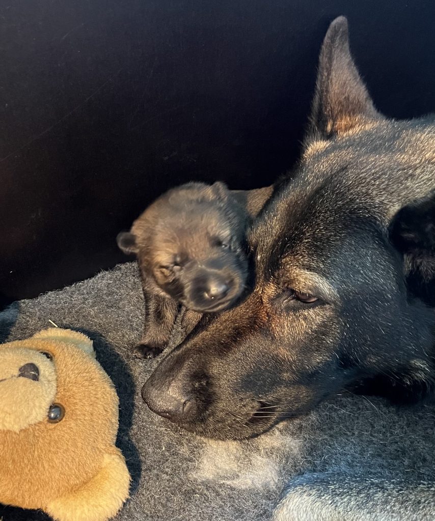 Op 27 oktober is het 2e nestje van Jacky geboren. Helaas maar 1 pup. Een wolfsgrauw teefje genaamd Hailey.
